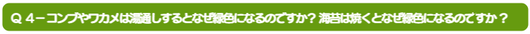 Q 4- コンブやワカメは湯 通 しするとなぜ緑 色 になるのですか? 海 苔 は焼 くとなぜ緑 色になるのですか?