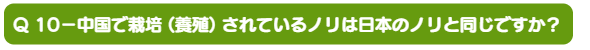 Q 10-中国で栽培 (養殖) されているノリは日本のノリと同じですか?