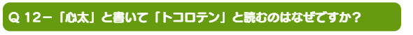 Q 12-「心太」と書いて「トコロテン」と読むのはなぜですか?