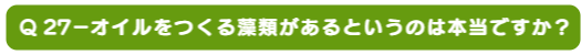 Q 27- オイルをつくる藻類があるというのは本当ですか?